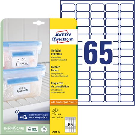 Etikett, 38,1x21,2 mm, fagyasztható, AVERY ZWECKFORM, 1625 etikett/csomag